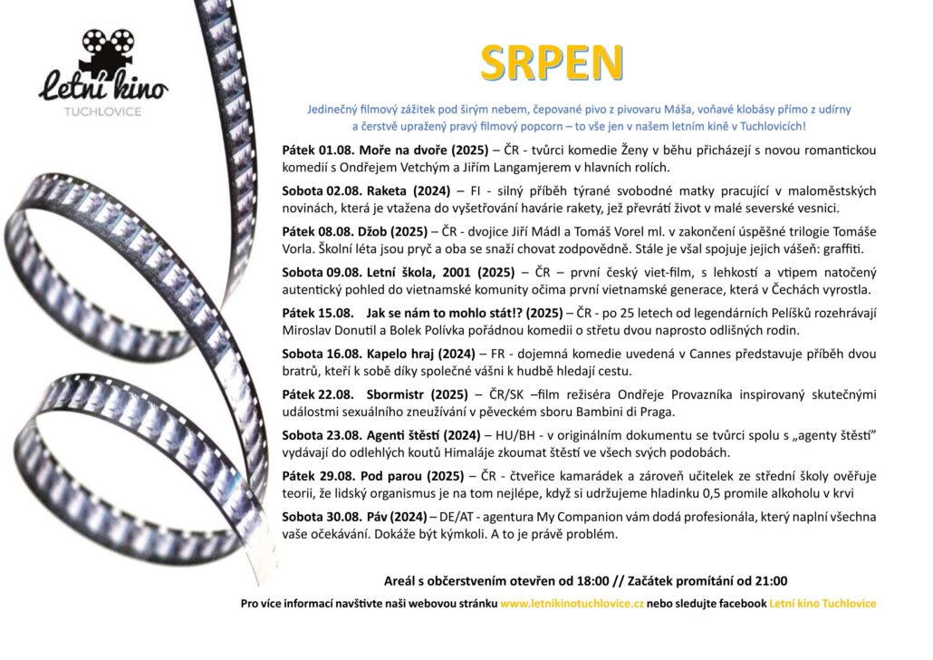 Pro vice informací prosíme sledujte facebookovou stránku “Letní kino Tuchlovice”
